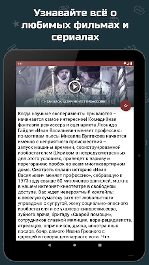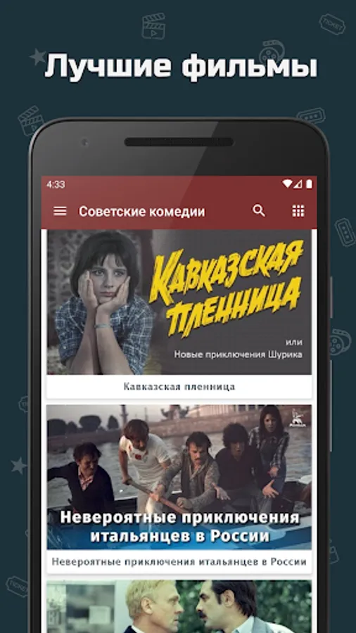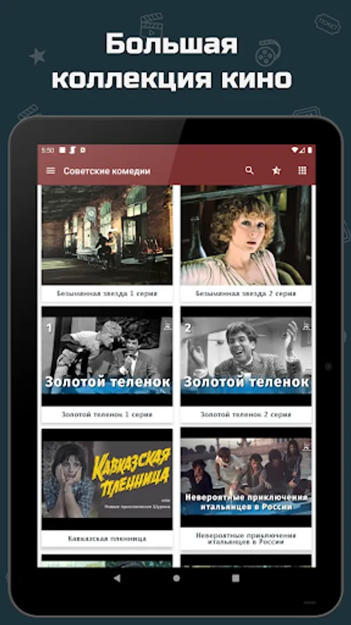 The funniest comedies are, of course, Soviet comedies. A collection of the best Soviet films and Soviet TV series in the best genre. Soviet comedies can simultaneously evoke joy from the pure and sparkling humor of actors (which is why Soviet comedies are the funniest comedies) and nostalgia for times long gone. In the application you can find a description of the film, the history of the creation of Soviet comedies, as well as watch Soviet films and Soviet cinema. Soviet and Russian comedies from different times.