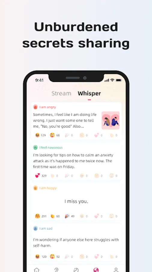 Engage in an anonymous community, share your stories, and seek emotional connections!