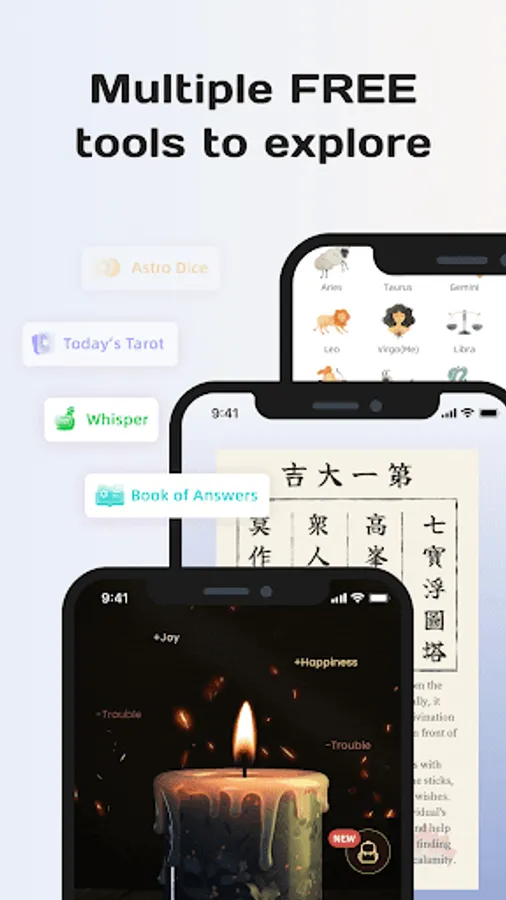 Explore tools such as Horoscope Forecasts, The Book Of Answer, Guanyin Divination, Energy Candles, and more.