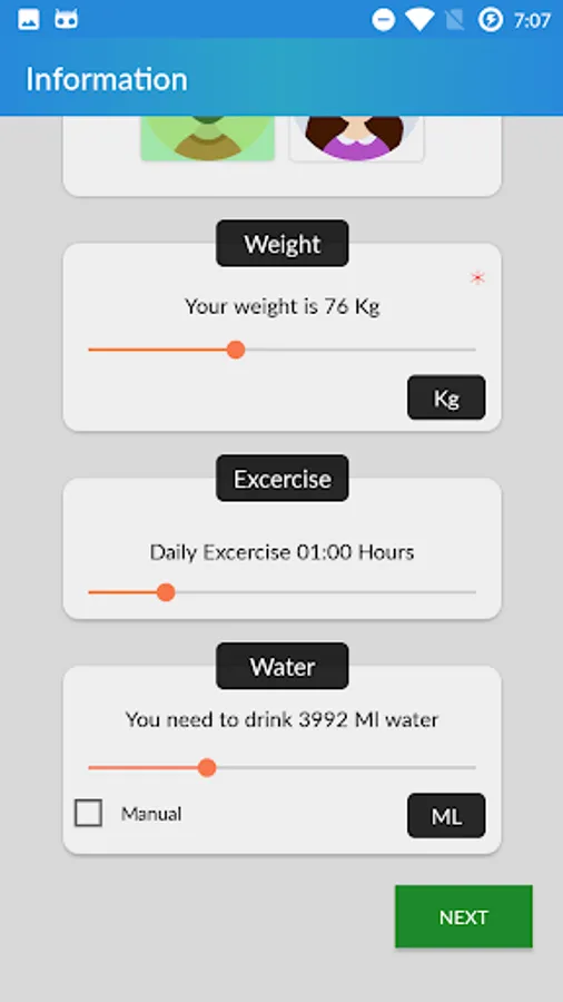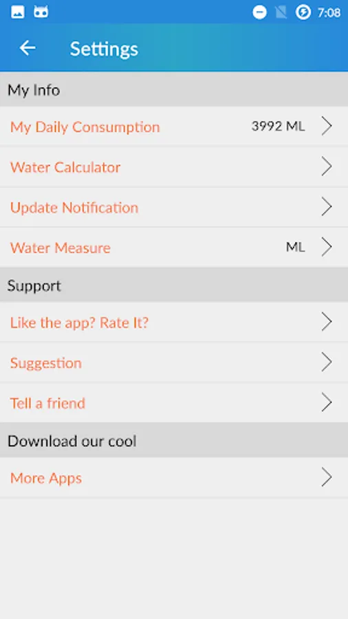 * Customize how much of water you drink each time, from 50ml -
