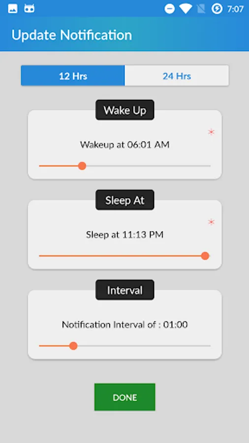 * Customized starting and ending time to drink water within a day