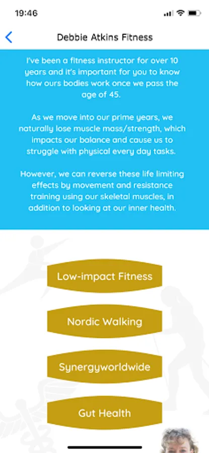Debbie Atkins specialises in supporting women over 45 to maintain their balance and muscle mass using low impact fitness, and optimised health related to the fascinating ecosystem within each of us called the Microbiome.