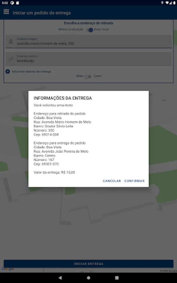 Download the app, enter your pickup location, delivery location, choose a car or motorcycle and you're done.