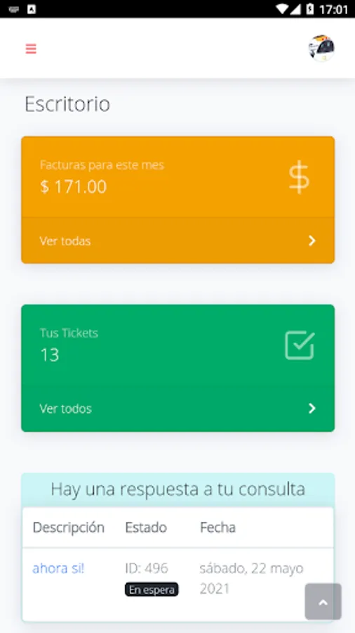 Con esta aplicación podrás ver tus servicios contratados, facturas y comunicarte con soporte técnico.