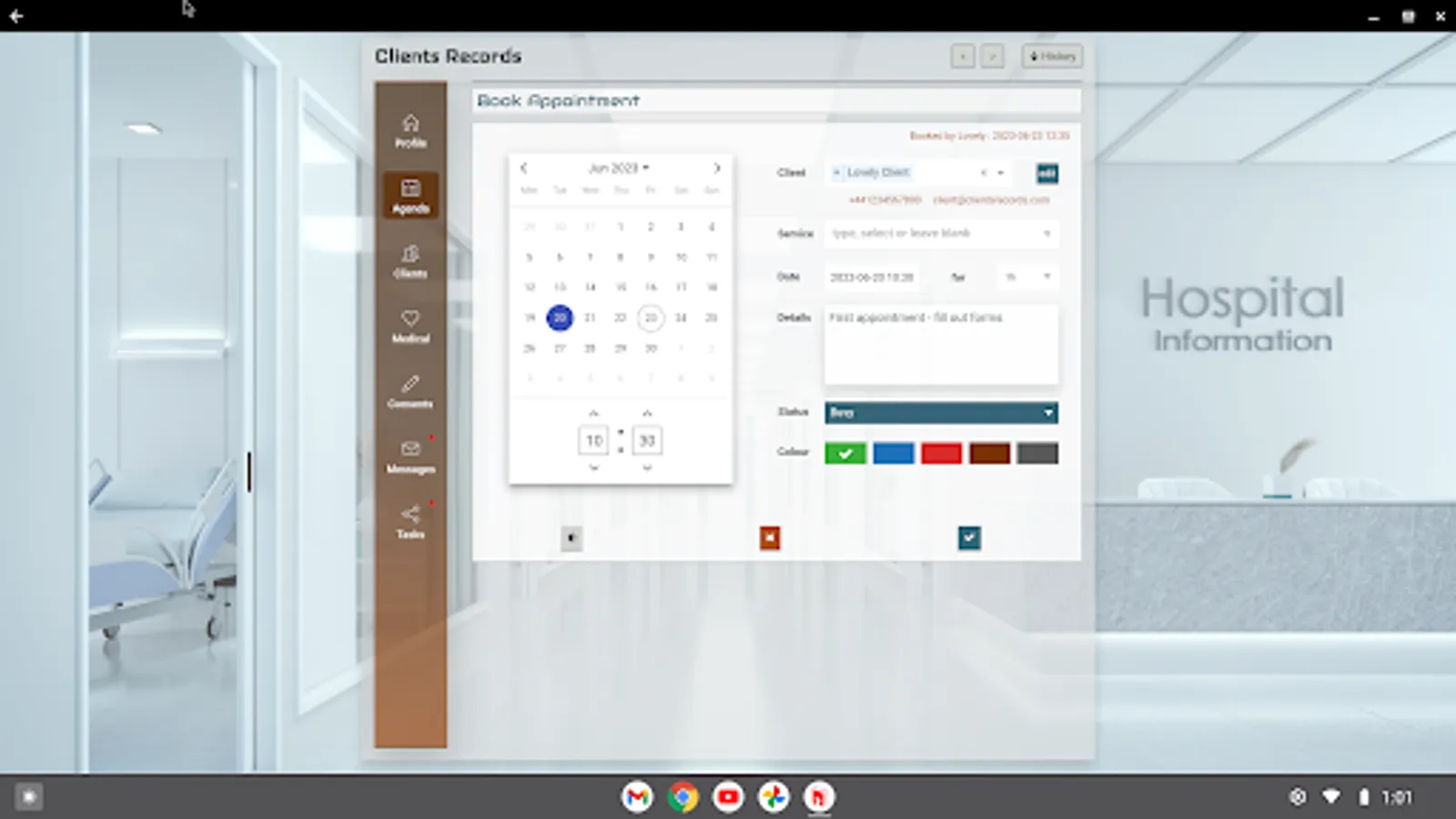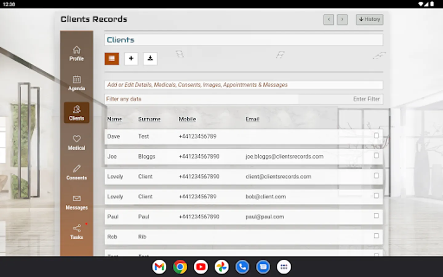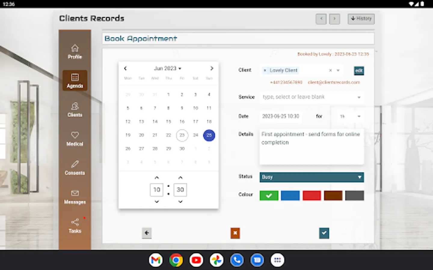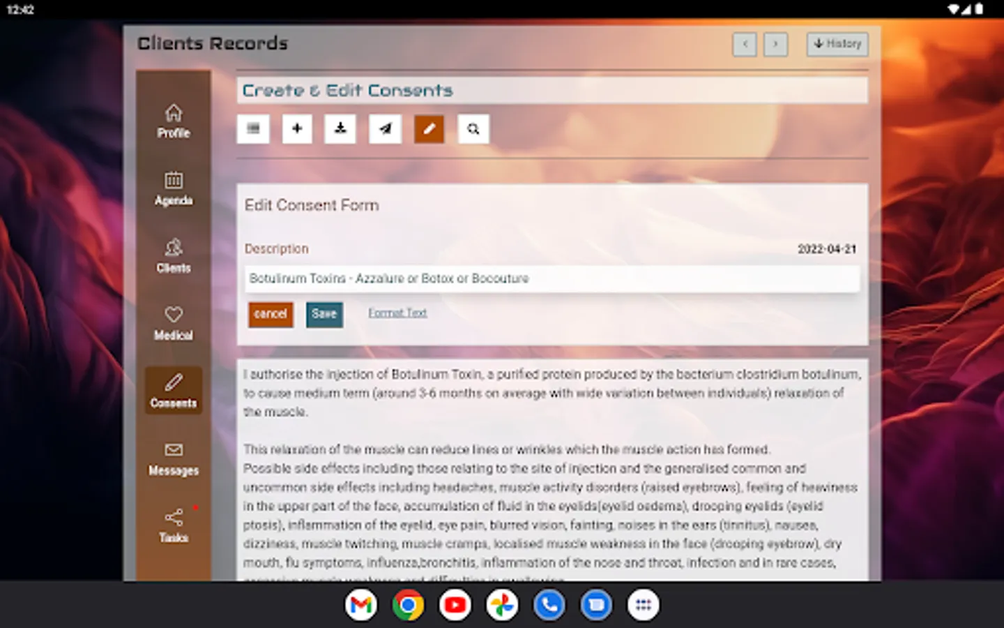 Clients Records and Forms App provides consent form creation from templates, authoring of medical questions for patient history, therapy image uploads, appointment bookings, the sending of online forms to clients for completion with signatures and a business portal where patients can sign up, make bookings and communicate with your practice.
