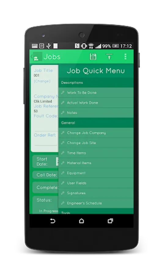 Clik Jobs is an Android app built from scratch to allow you to link with your Clik Service database. By making the most of mobile Internet and WiFi hotspots you can now access your Clik Service jobs whilst on the move. (An internet connection is only required to sync jobs).