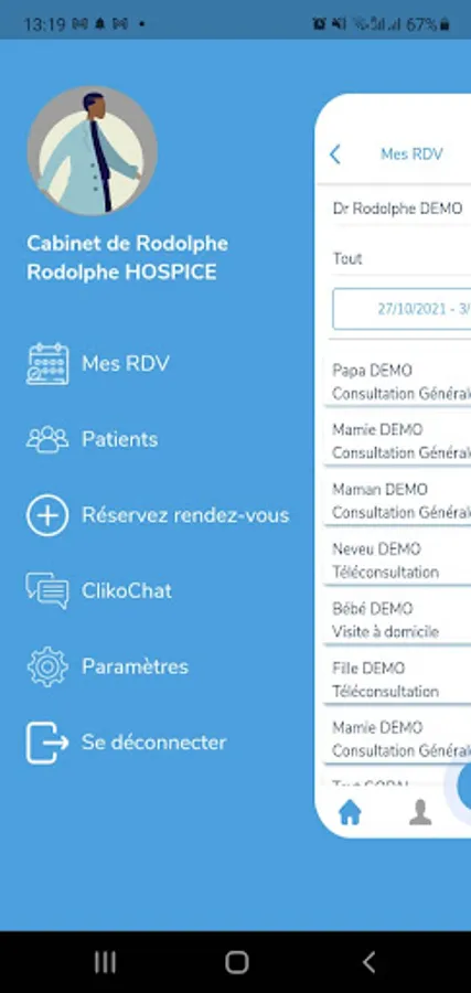 In your Clikodoc (Professionals) Africa application, find the list of your patients, your past and future planning, your personal information and your ClikoChat messaging.