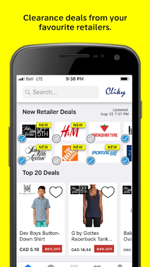 Never miss a deal with the Cliky app! Cliky focuses on last minute clearance deals only from your favourite retailers to ensure you never miss that great deal. Imagine always getting first dibs, now that's different! Savings from 50% or more.