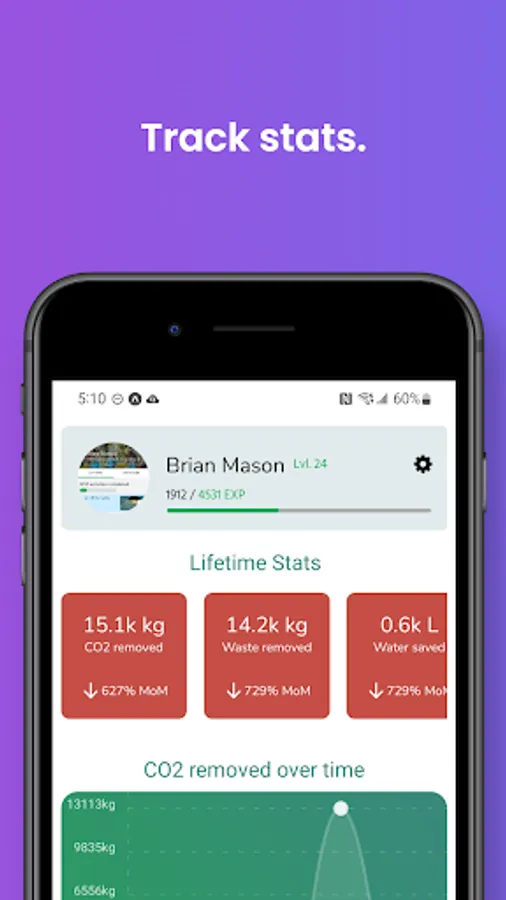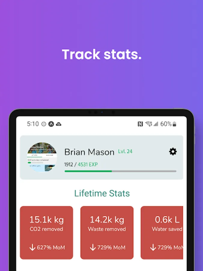 - Track reductions in carbon emissions, water, and waste! Create a measurable difference!