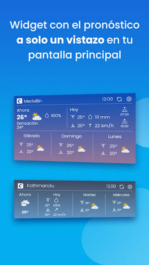 With your new Clima app you can plan your day with fast, simple and intuitive access to the most reliable weather forecasts. Your forecast at any time from Clima, experts in Weather and Climate.