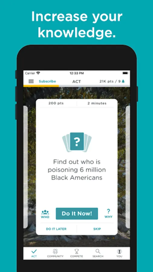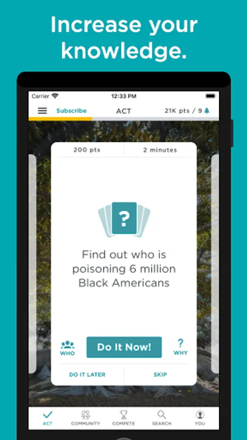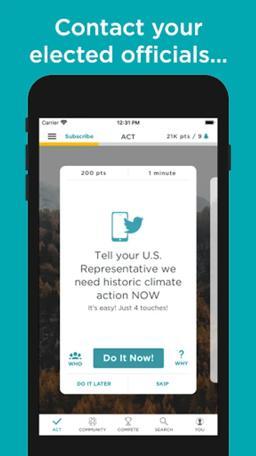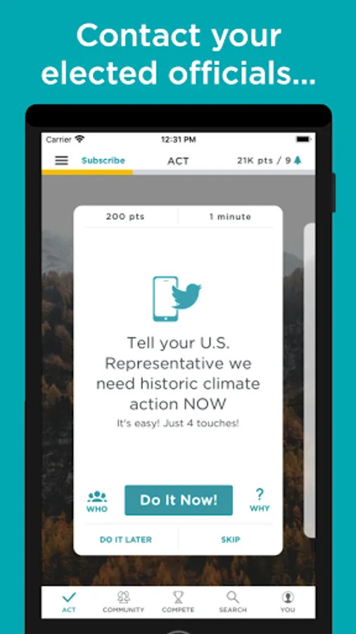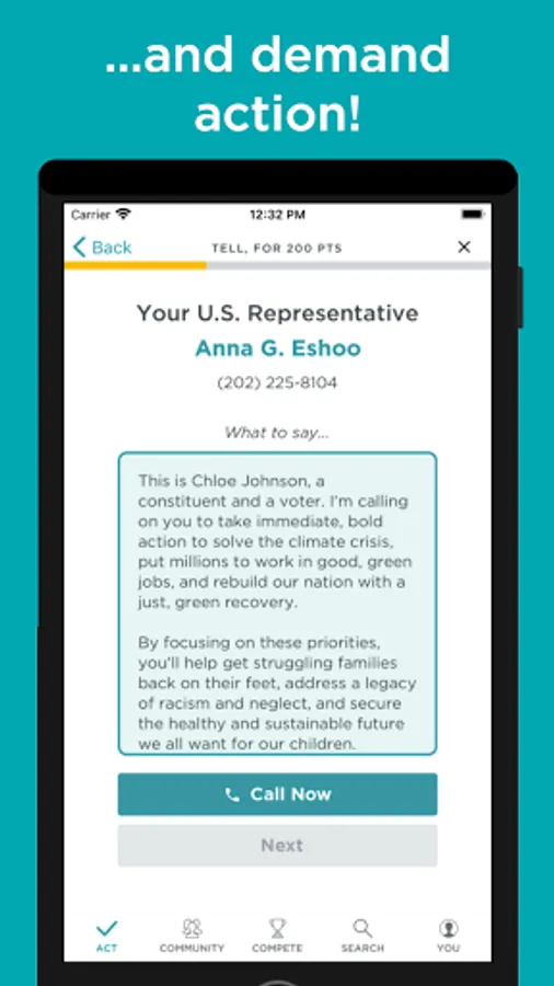 EASY. Most actions in the app – like contacting your elected officials, emailing CEOs, or Tweeting at celebrities to step up – can be taken with just a few touches in just a few seconds. We’ve done all the work for you so that you don’t have to. Don’t know who your elected officials are? Give the app your location, and it will tell you. Don’t know how to contact them? The app has their phone numbers and Twitter handles. Don’t know what to tell them? We give you personalized, boilerplate messages that you can accept or modify.