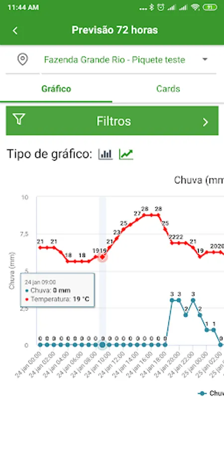Through a clean, fast and fluid interface with Agroclima PRO App you can make the visualization and meteorological management of your farm with practicality and speed. The application has the following features:
