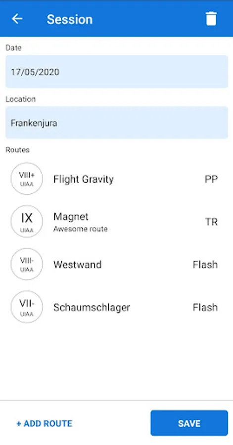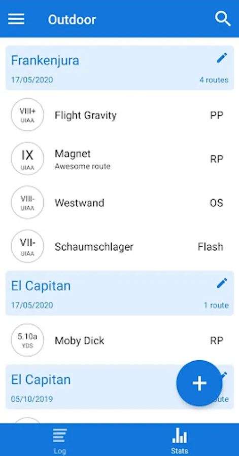 Climbing diary allows you to track your climbing sessions and routes you climbed. You can see the statistics, export all data in .CSV format and more.