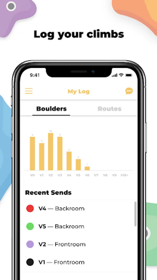 ClimbTime helps you log all of your gym sends and helps you track your progress. See a list of all completed problems including the number of attempts. ClimbTime also gives your progress charts to see your improvement.