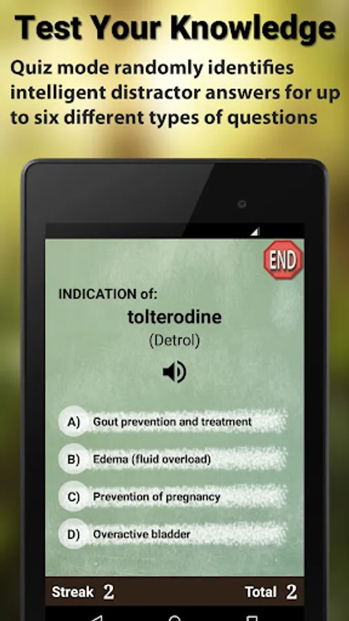 • Quiz mode includes a selection algorithm to randomly identify intelligent distractor answers to keep you on your toes