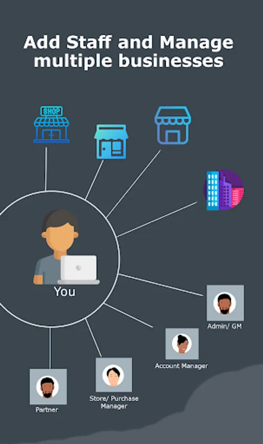 Add staff and manage multiple businesses. Like store manager, accountant