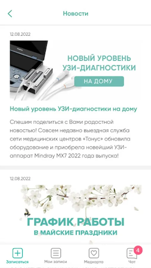 A mobile application for convenient interaction between patients of the Tonus network of medical clinics and specialists.