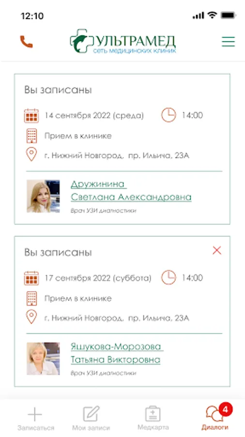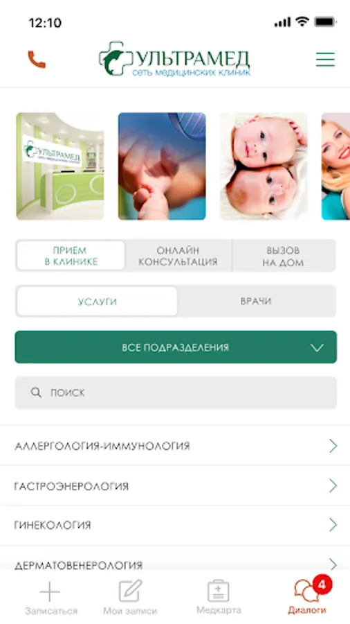 The application of the UltraMed clinic network in Nizhny Novgorod and the region is a convenient service for all patients of the UltraMed and UltraKIDS clinics, which allows you to: