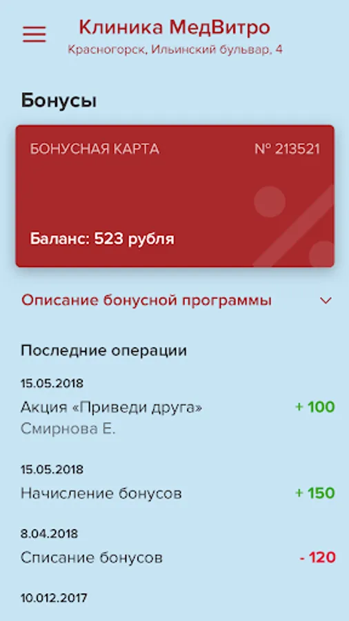- Personal account with a history of all previous and future visits, as well as favorite services