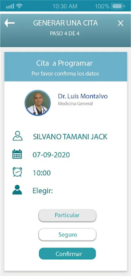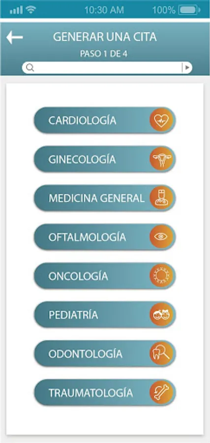 The App allows you to schedule medical consultations and their subsequent care. Its main functions are: