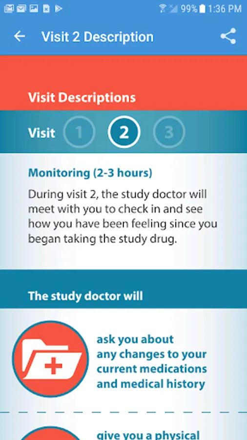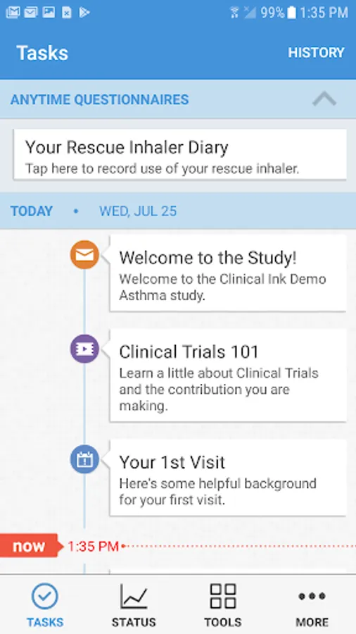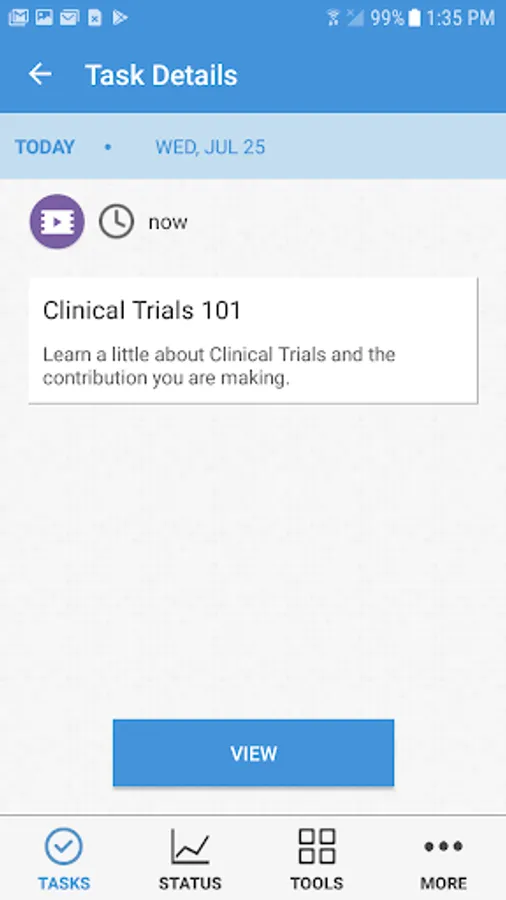 • Relevant videos or content to help you understand more about the trial that you are part of, or to help you prepare for upcoming tasks or appointments