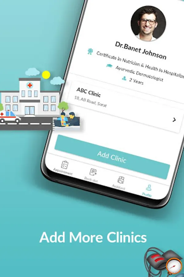 Doctor can manage multiple assistance for multiple clinics. Per clinic one assistance can book appointment of patients to make work more easy.