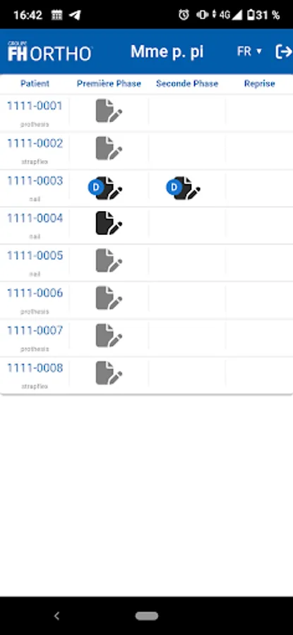 Application for filling in the patient quality of life form as part of the FH-Ortho study.