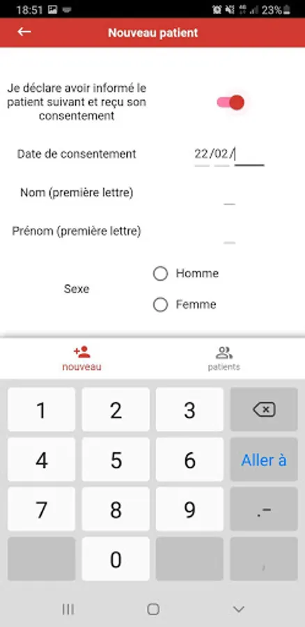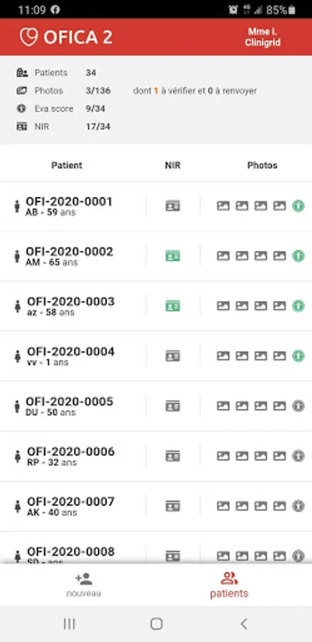 Medical application used by registered doctors to perform Ofica2 inclusions