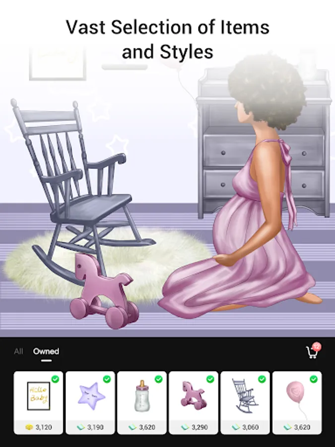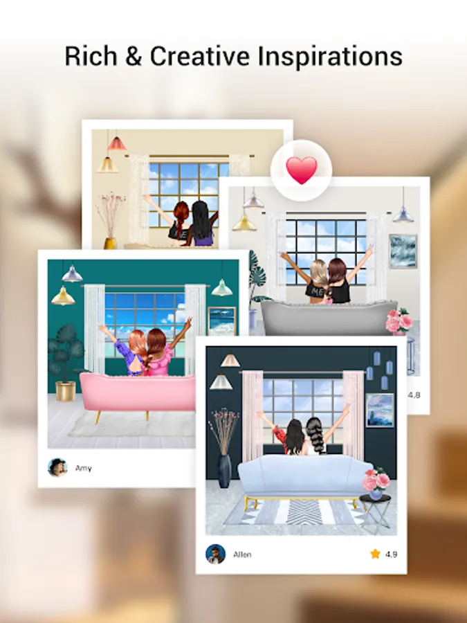 * Customize all the details of hairstyle, clothing, furniture, wallpaper, floor, ceiling, etc.