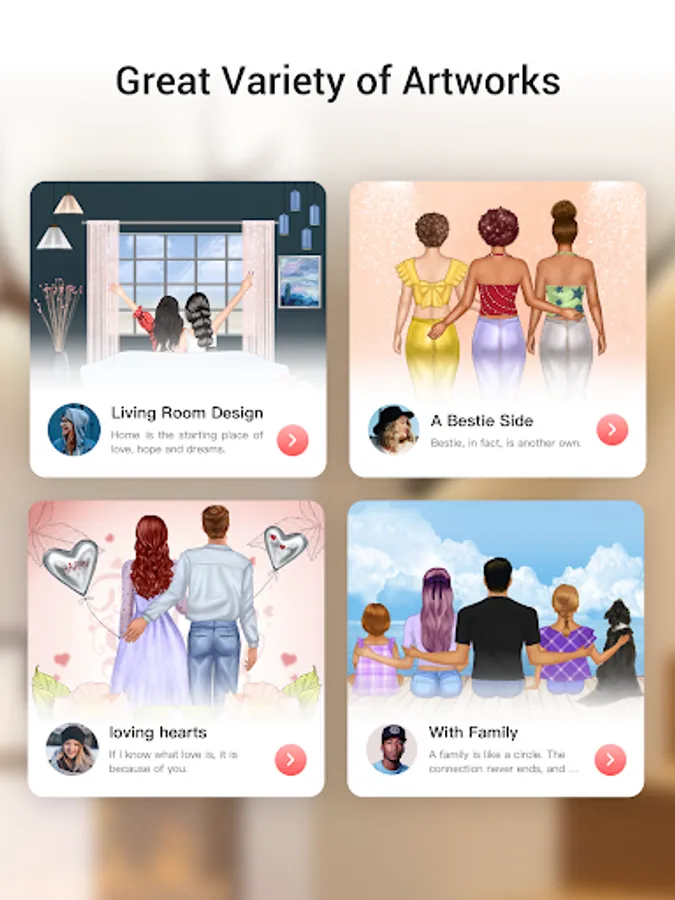 * Choose ideas, stickers, colors, patterns, and then create unique and beautiful paintings.