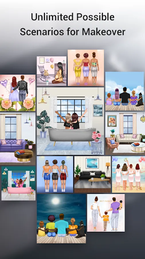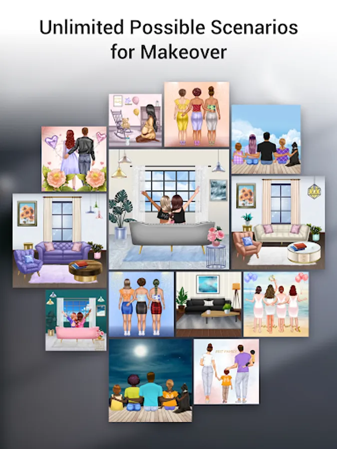 * Relax by designing and decorating various scenarios including but not limited to home decor, BFF, family, holidays, etc.