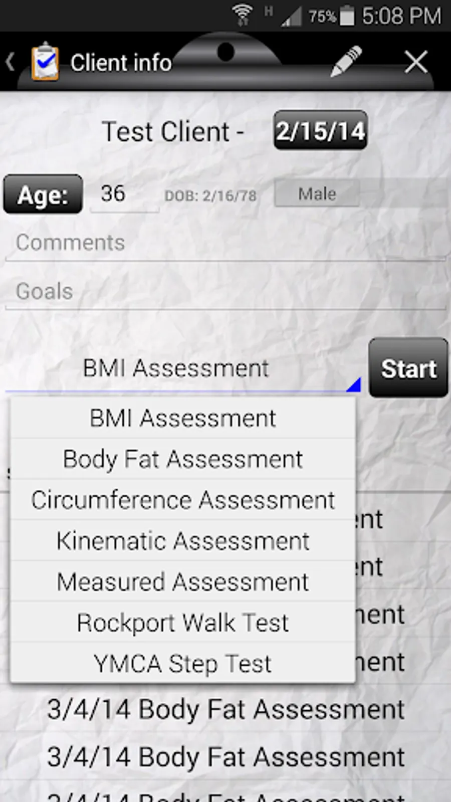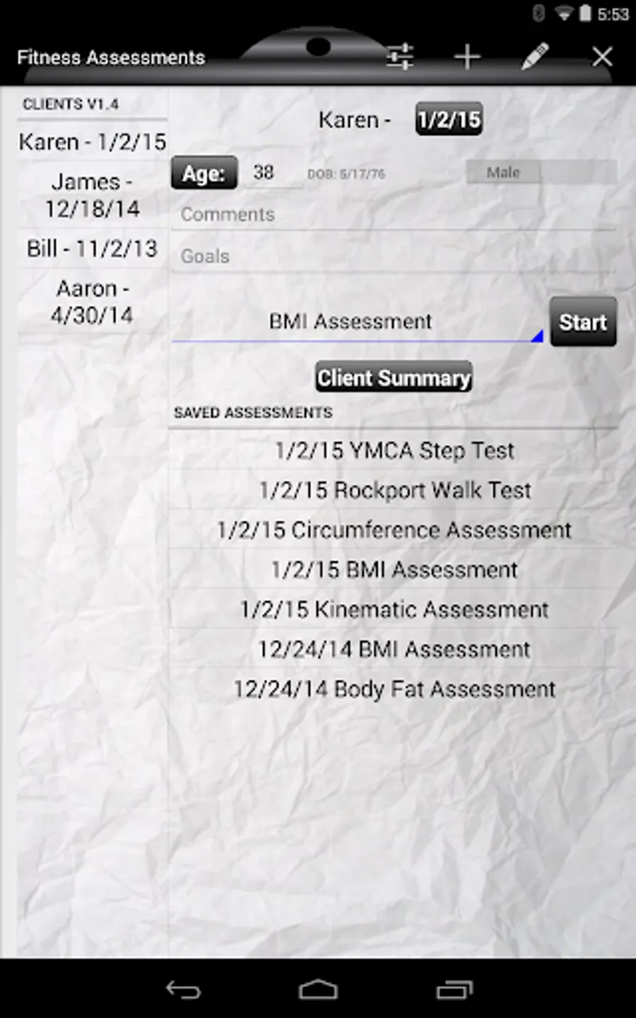 - A tool to perform and track client assessments for Certified Personal Trainers