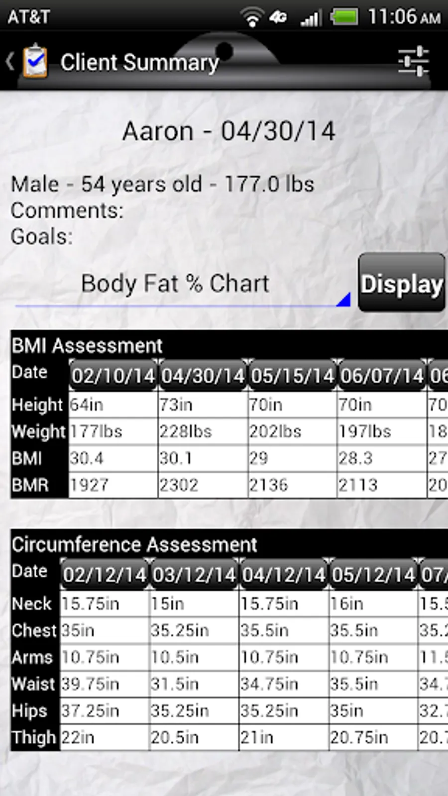 Circumference Assessment (neck, chest, arms, waist, hips, thigh)