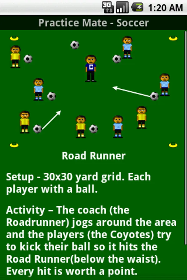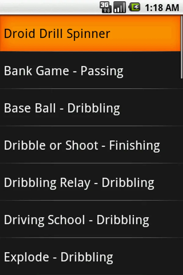 Not sure what to practice today ? Pick from a list of drills or use the Droid "Drill Spinner". Just swipe the the "Droid Drill Spinner" and let the Droid randomly pick one of the over 30 fun soccer activities.