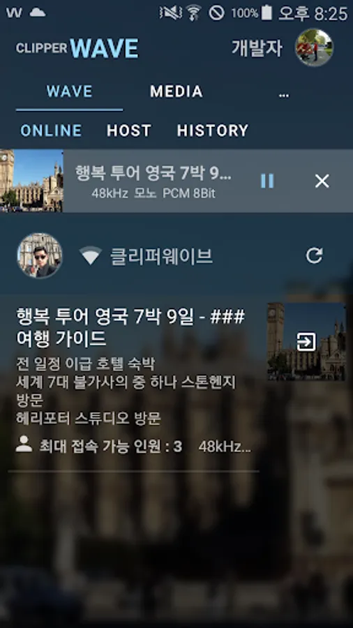 2. Travel guide-You can listen to the voice of the travel guide all the way by connecting to the wave through the guide's own wireless router or hotspot without a separate wireless receiver, and easily share various additional materials between the guide and the traveler You can.