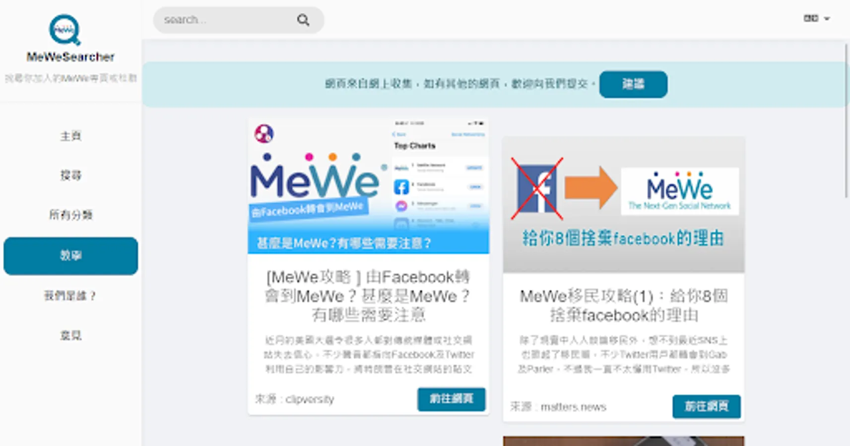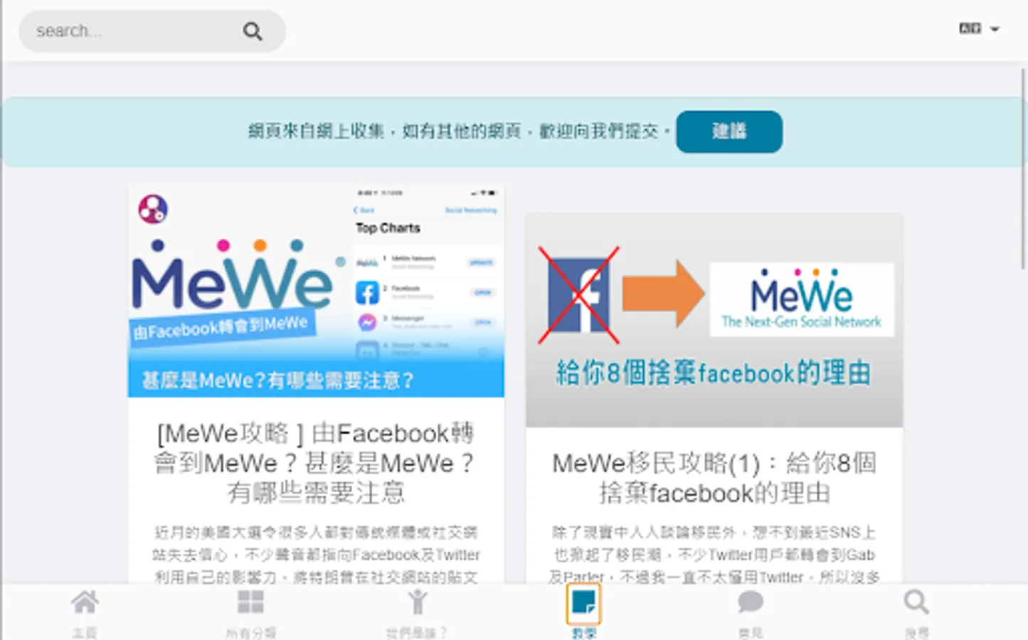 1️⃣ Integrate and categorize the MeWe group/page list in Hong Kong and Taiwan. Making it easier for others to find suitable MeWe groups and pages.