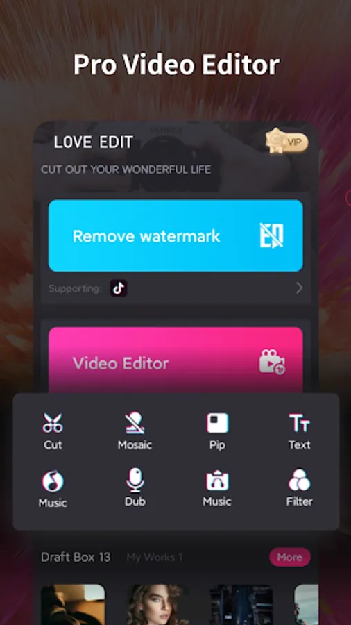 As a Free Video Maker, Love Edit now has a Free Watermark Removal Feature which helps Remove Watermark from the original video.