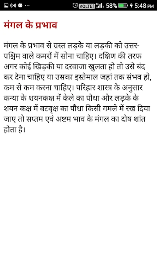 How long is the effect of Mangli dosha