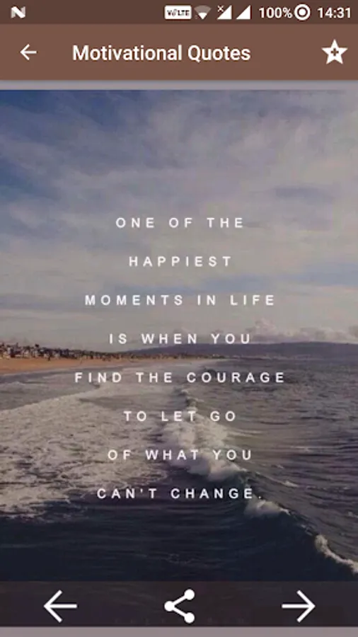 - Set quote as favorite and quickly browse through the bookmarks.
