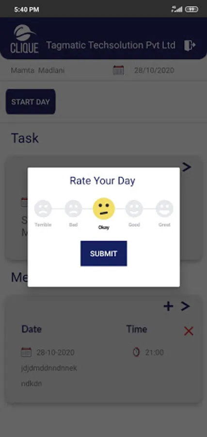 AEON is android extension to Tagmatic Techsolutions Pvt. Ltd.,(s) CRM portal, its handy for employees to track their task, meetings, breaks etc. It’s also has a mood-o-meter to share employees satisfaction score with management, after all happy employees makes the happy workplace.