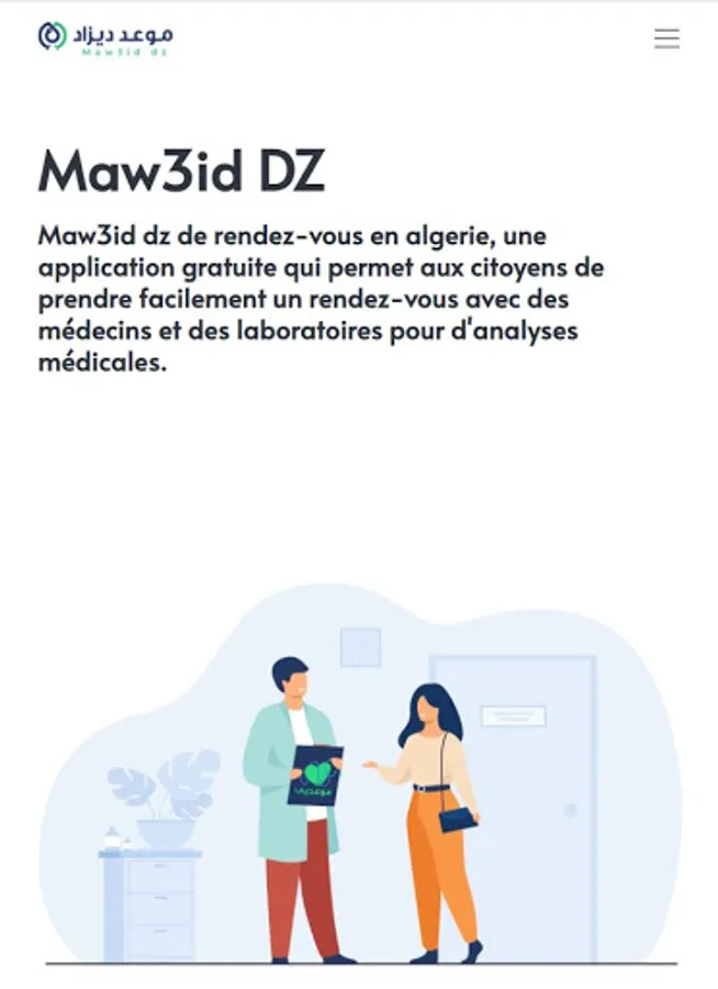 Maw3id DZ Appointment Application and website is a free application that allows citizens to easily make an appointment with doctors and laboratories for medical analysis.