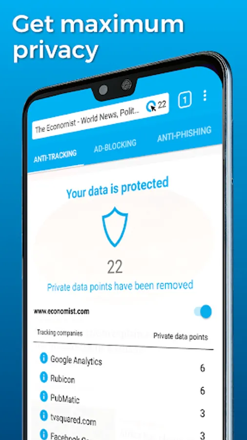 Protect your privacy with Cliqz anti-tracking. Our AI-based technology prevents your personal information from being transferred to advertisers or other third parties when you visit a website. This way, trackers don't stand a chance!