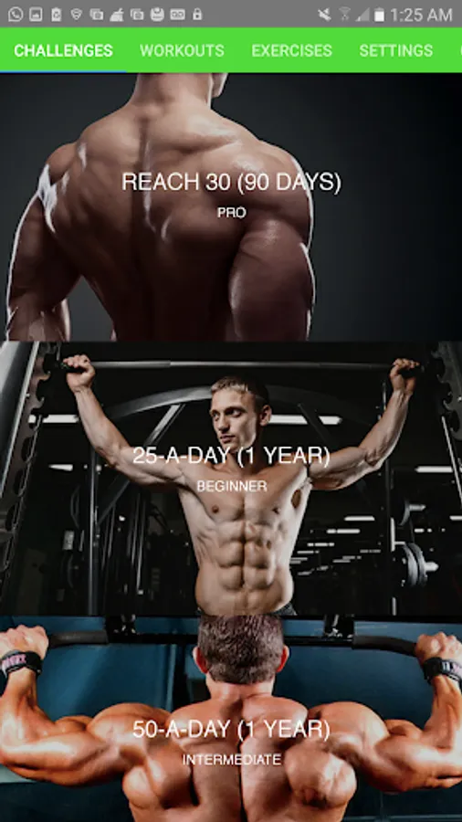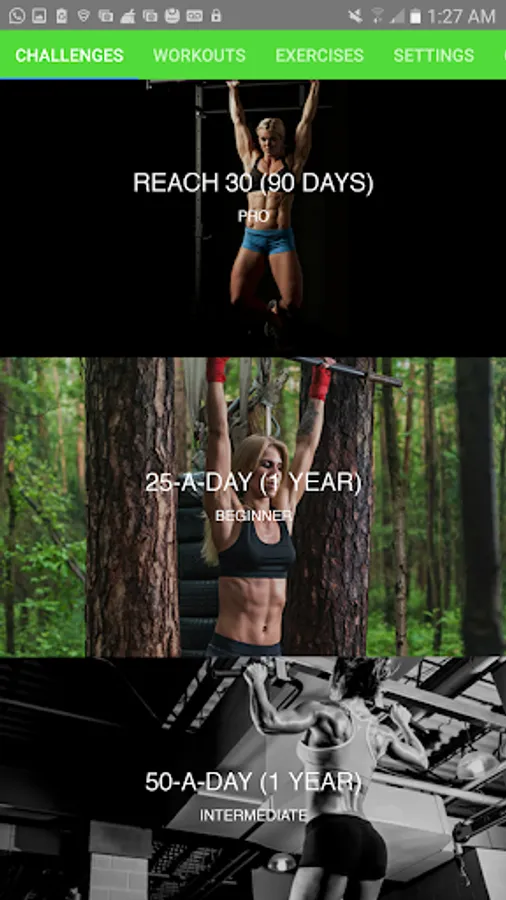 There are several challenges for you to choose from to help you achieve your fitness goals. The challenges have various length and goals. You tell the app what your current fitness level is and it customizes the challenge specifically for you!