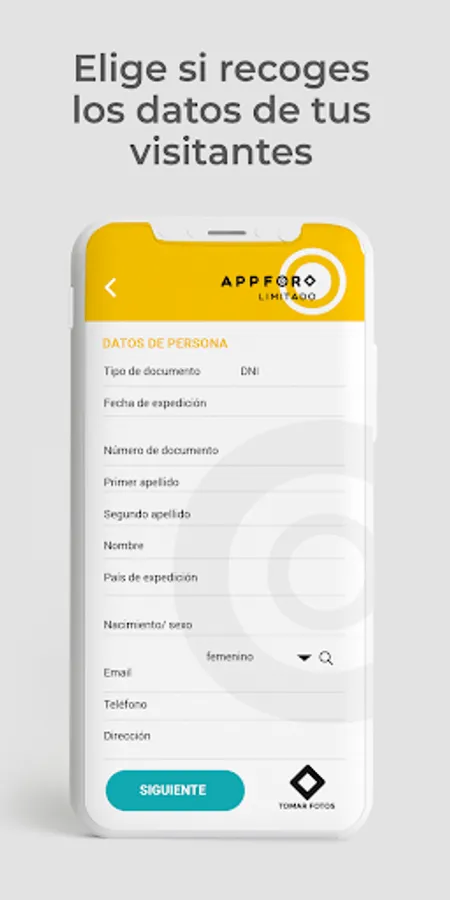 • DATA: Choose if you want to collect the data of your visitors or not. If you choose to register, you can do it in a simple way by scanning your identity document through the device's camera and without any type of contact with the user.