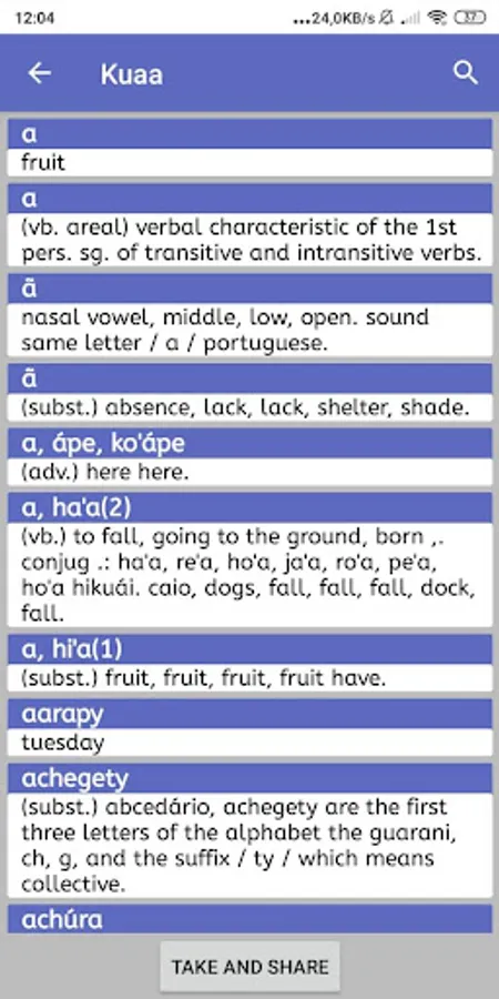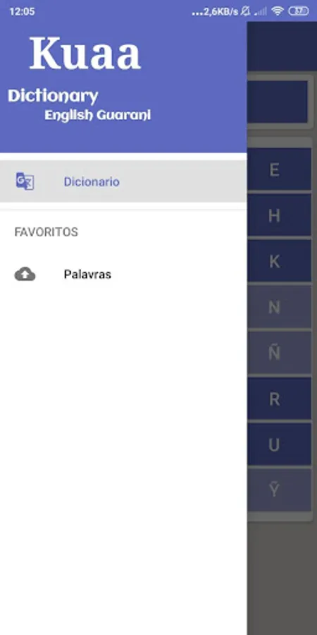English to Guaraní dictionary, with word search fields and inclusion of favorites.
