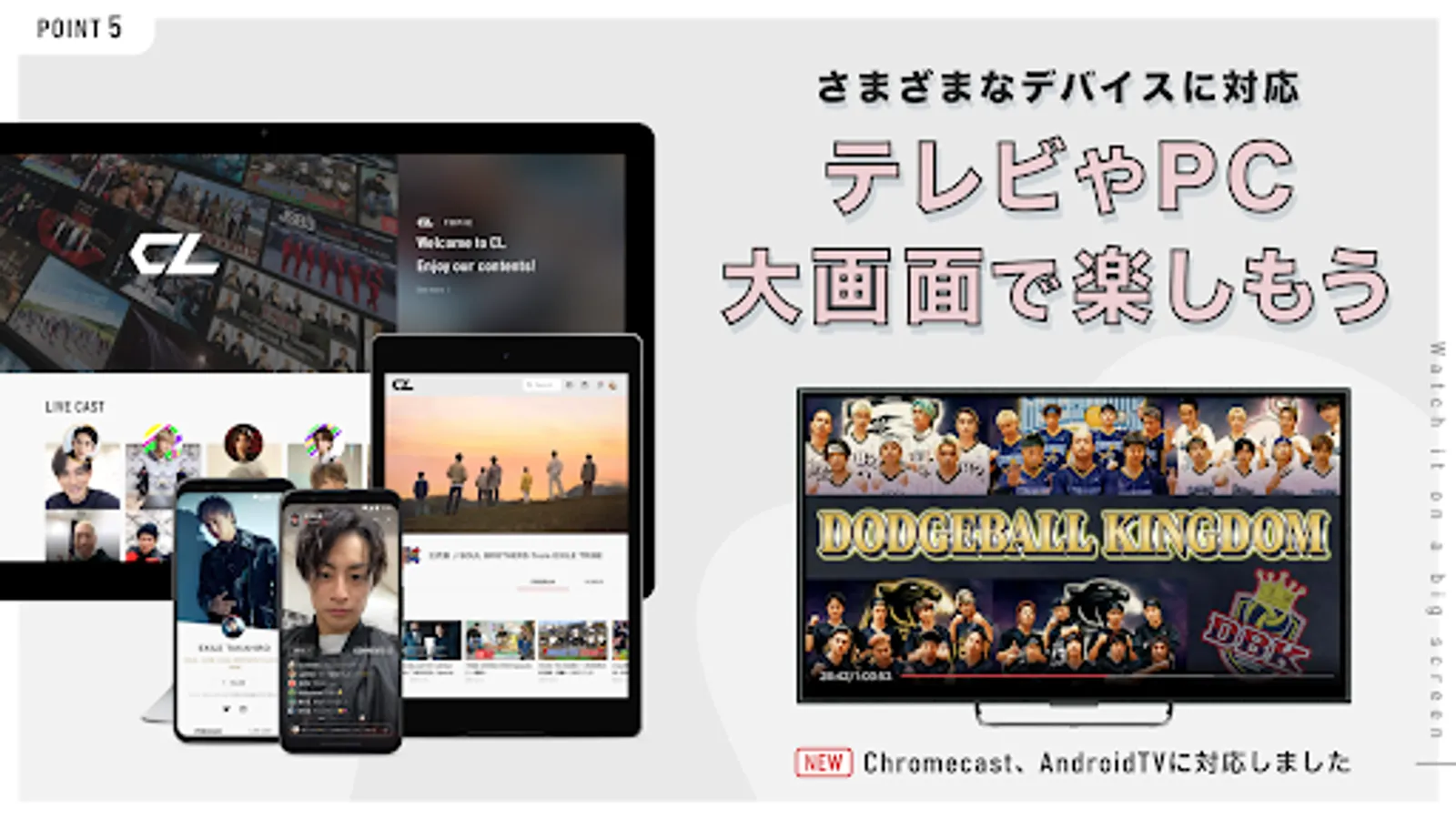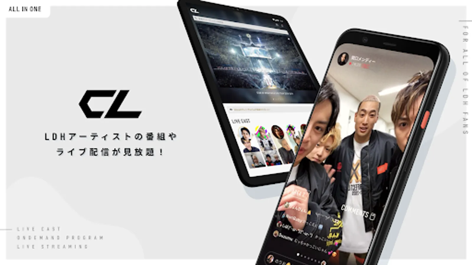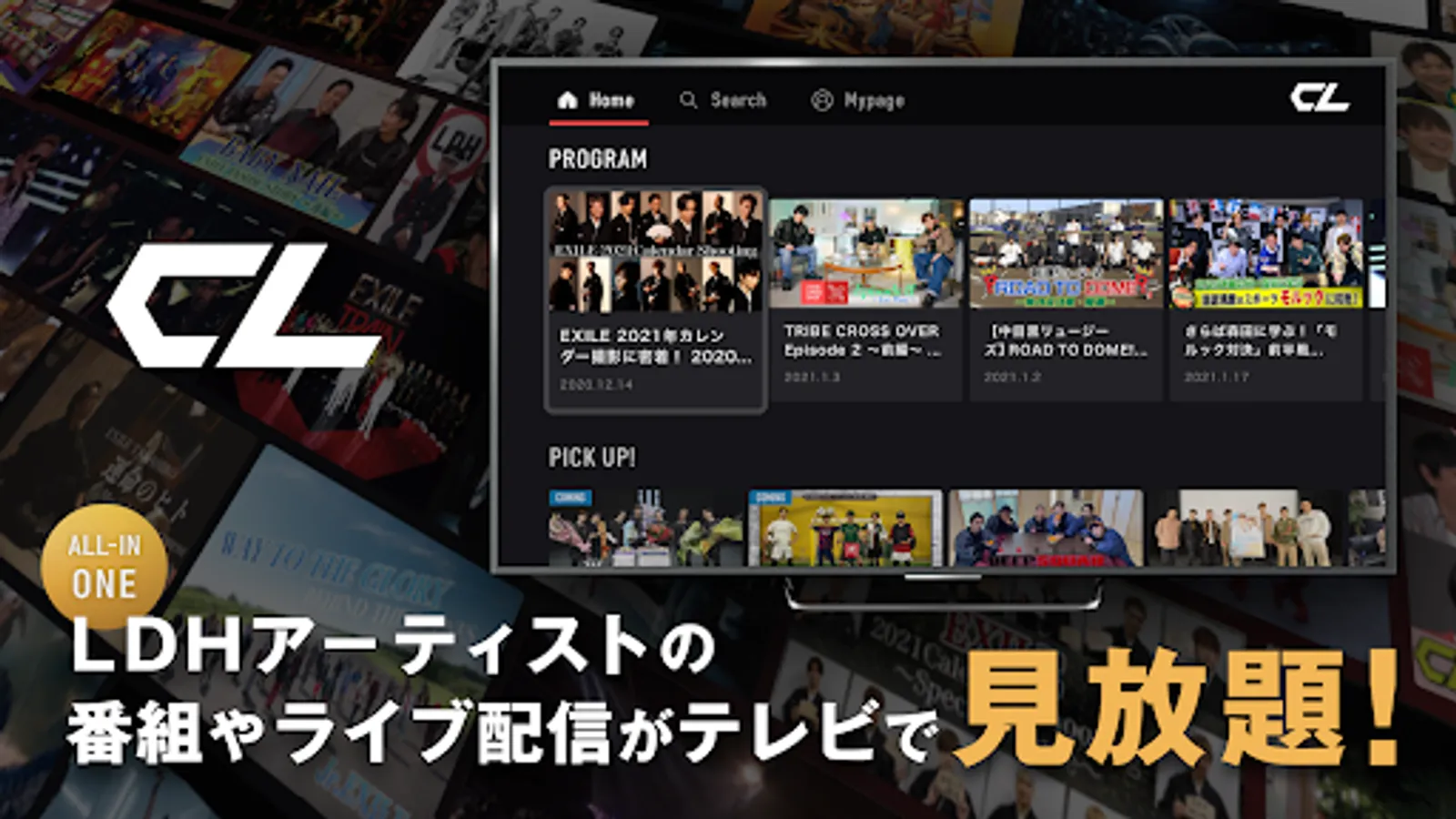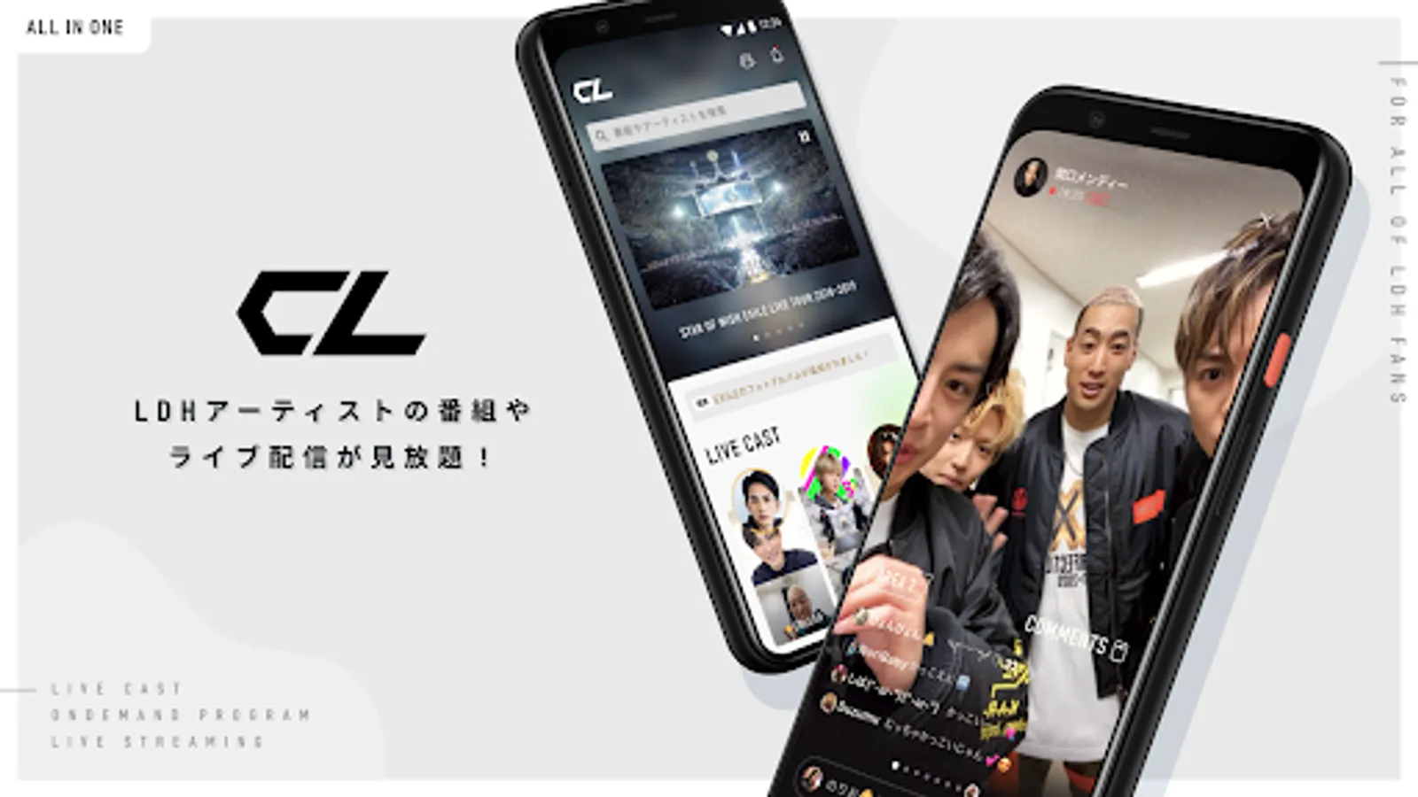 CL is the ultimate entertainment service, allowing users to enjoy original LDH programs and live streams by artists freely whenever they like on their TV, PC, smartphone, or tablet, and communicate with artists and fans any time.