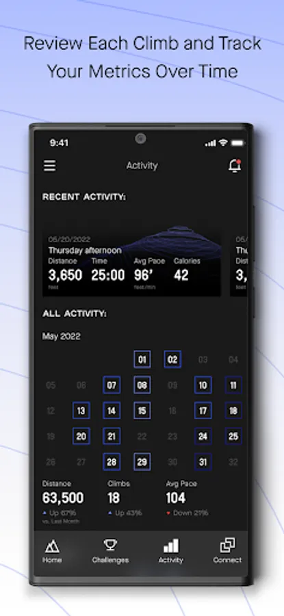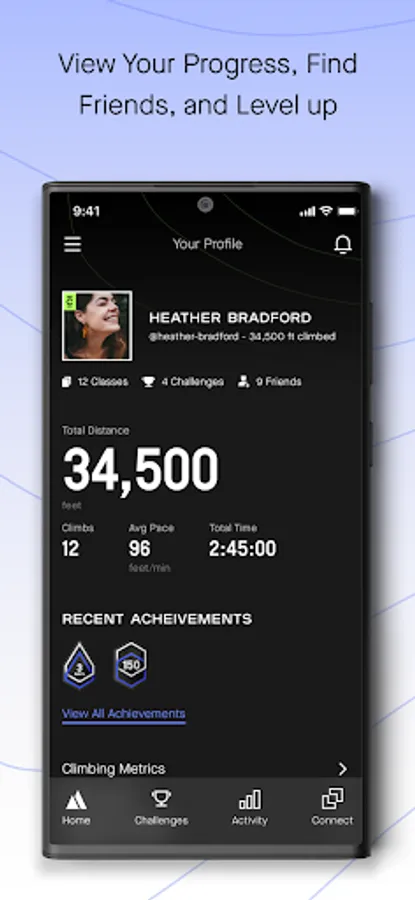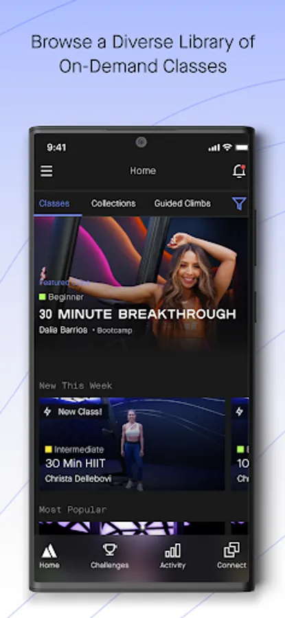 Connect to your CLMBR with the CLMBR companion app. See your workouts, challenges and classes from anywhere.