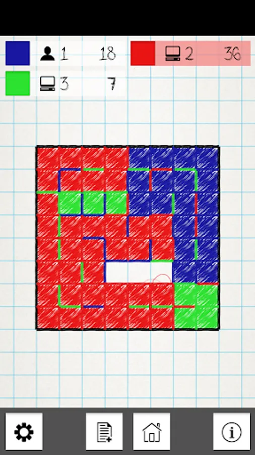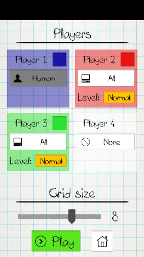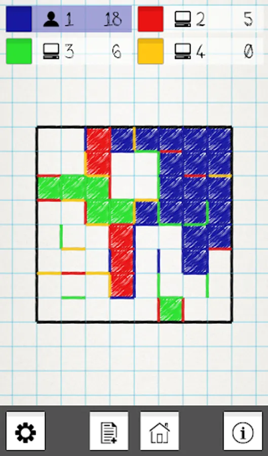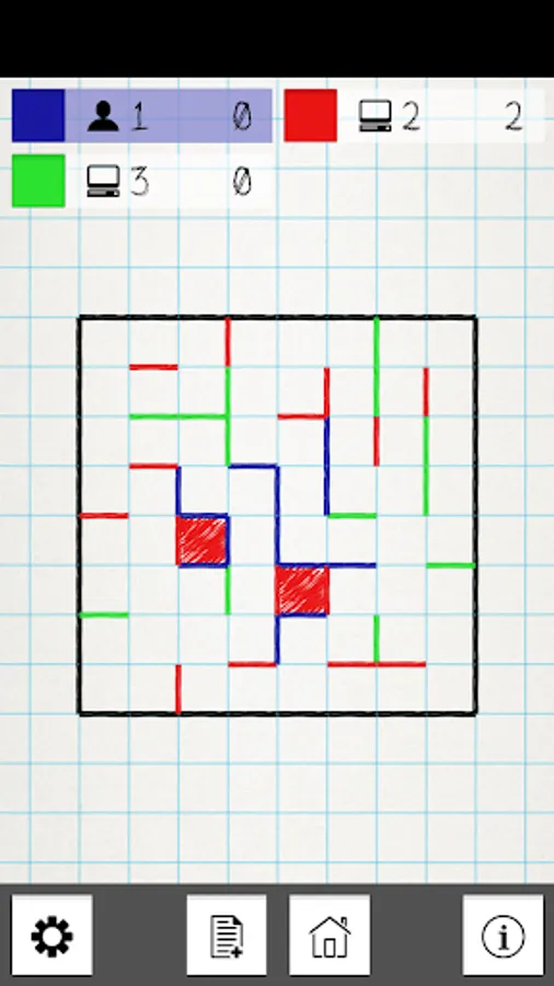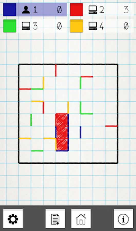 The rules are simple : each turn, a player draws a line on the grid. If the line closes a square, the player scores a point and he can play again. Form the most squares to win the game !