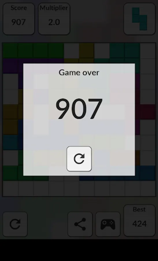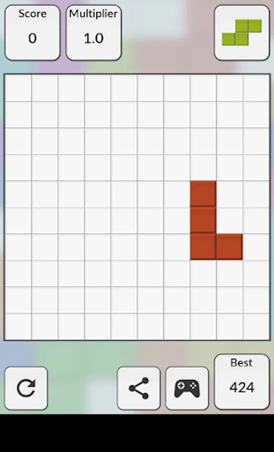 The score multiplier increases with every line you make, and decreases slowly after every move.