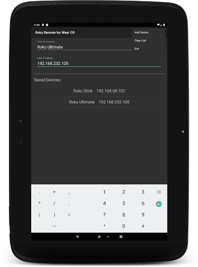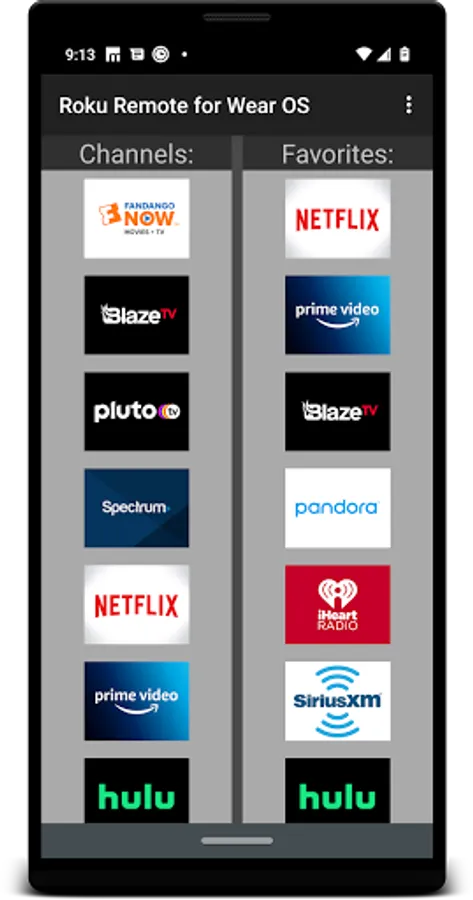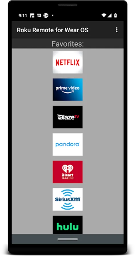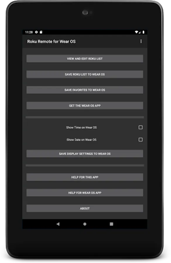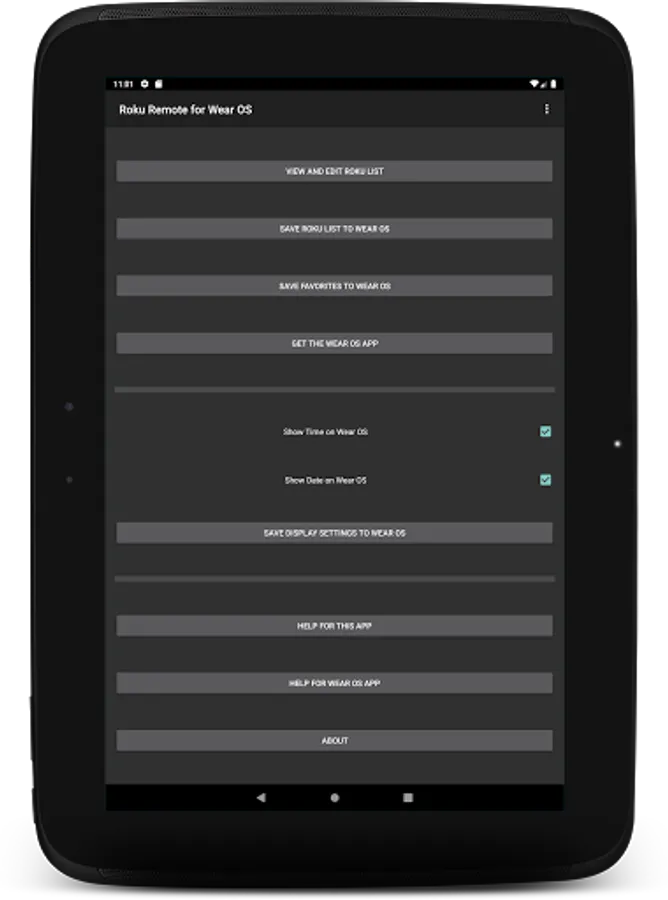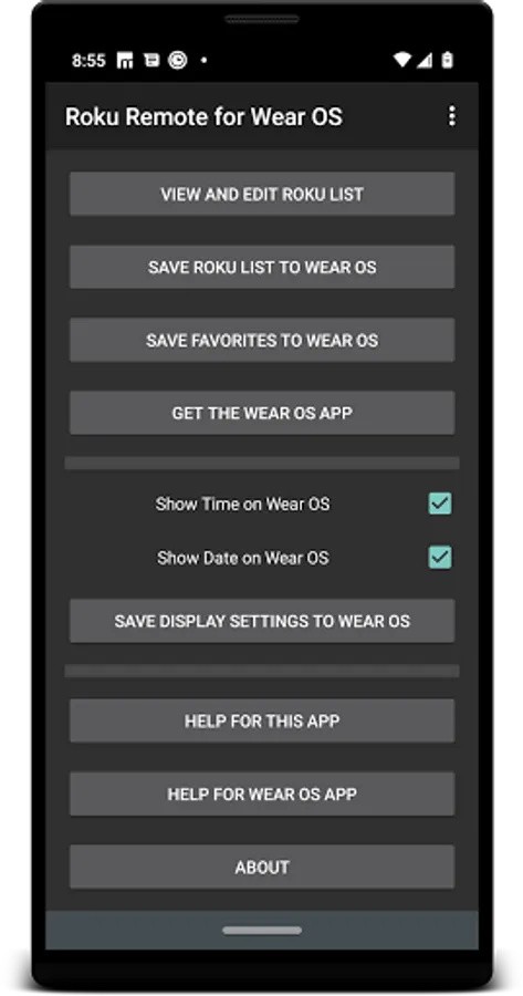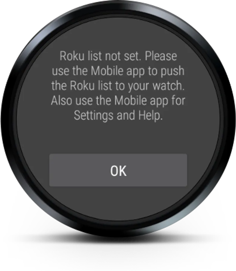 Please note there are no settings or help files on the Wear OS app, so make sure that you have the companion Mobile app installed on your connected Phone or Tablet and fully functional as per the Mobile app help file. On the Mobile app, you set up your Roku device and Favorite lists then save them to the Wear OS app.